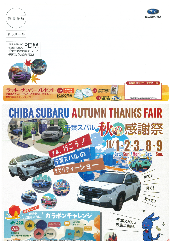 SUBARU車トレカがもらえる!!