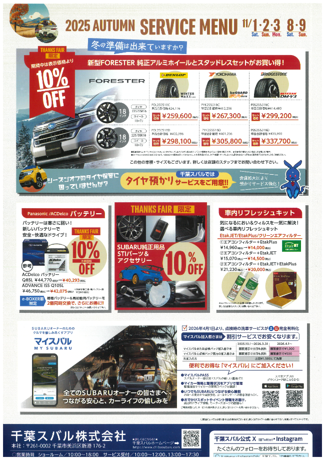 皆さまこんにちは!千葉スバル松戸店でございます!すっかり秋模