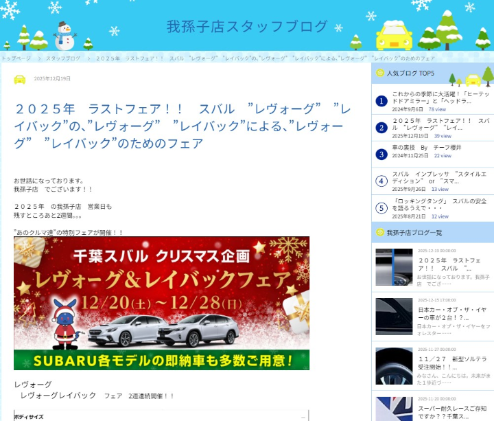 2025年 ラストフェア!!!!もラスト4日間 スバル レヴォーグ & レイバックフェア
