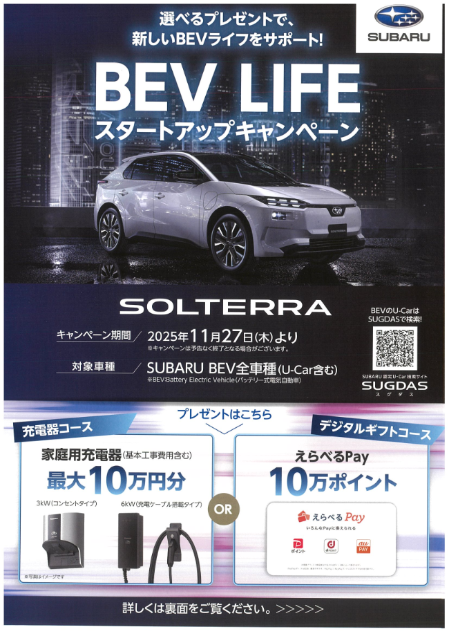こんにちは!!千葉スバル 我孫子店です!!4月9日 新型EV