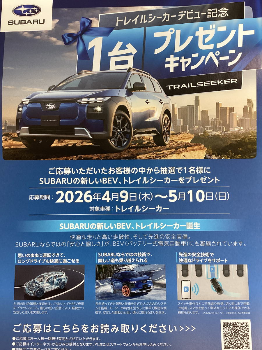 こんにちは!!千葉スバル 我孫子店です!!新型BEVトレイル