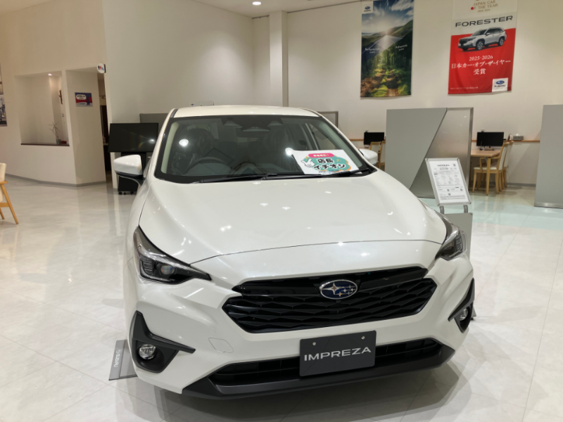 ↑インプレッサでございます。アイサイト等基本装備を充実させ、なおかつコスパの良いお車でございます!