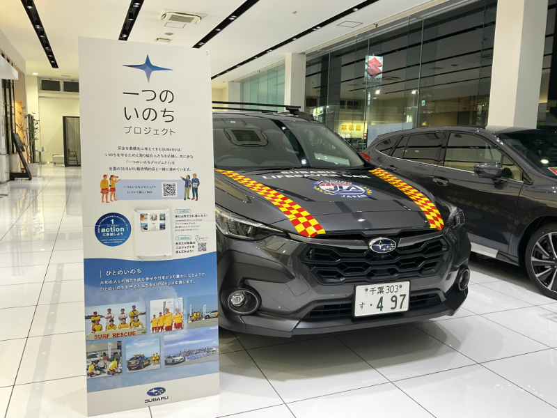 ショールームには、日本ライフセービング協会(JLA)のクロストレックのライフセーバーカーを期間限定で展示しております!なかなか見れない車両なので是非この機会に「ライフセーバーカー」とSUBARUの「ひとつのいのちプロジェクト」をご覧ください!