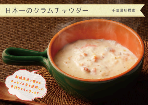 表題になっている日本一のクラムチャウダーは、船橋市の一品です。