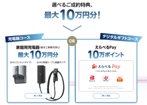 家庭用充電器最大10万円分又は、えらべるPay10万ポイントをプレゼント!