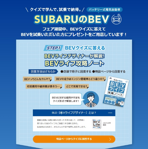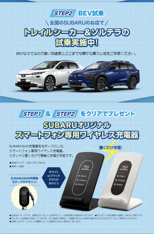 クイズに答えて、BEVに試乗してSUBARUオリジナルワイヤレス充電器をプレゼント!