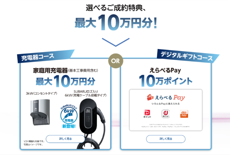 現在スバルで電気自動車をご購入頂くとキャンペーンの対象です!