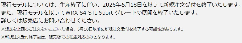 WRX S4生産終了 のご案内