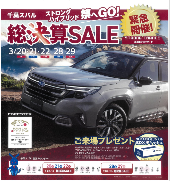 今年度ラストチャンス、、千葉スバル グランドファイナルフェア開催!!